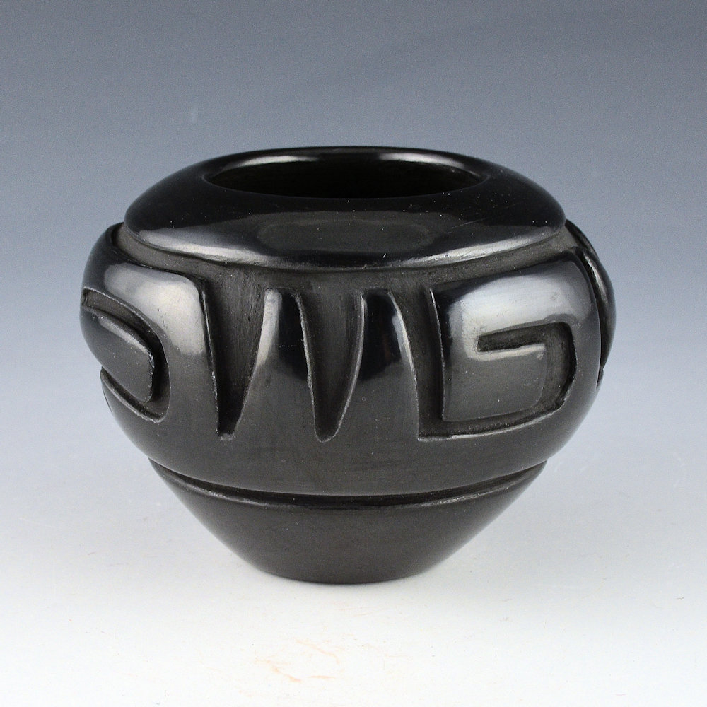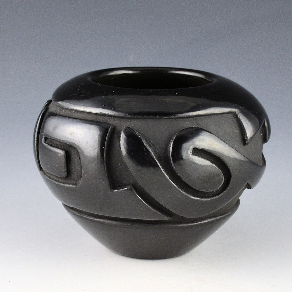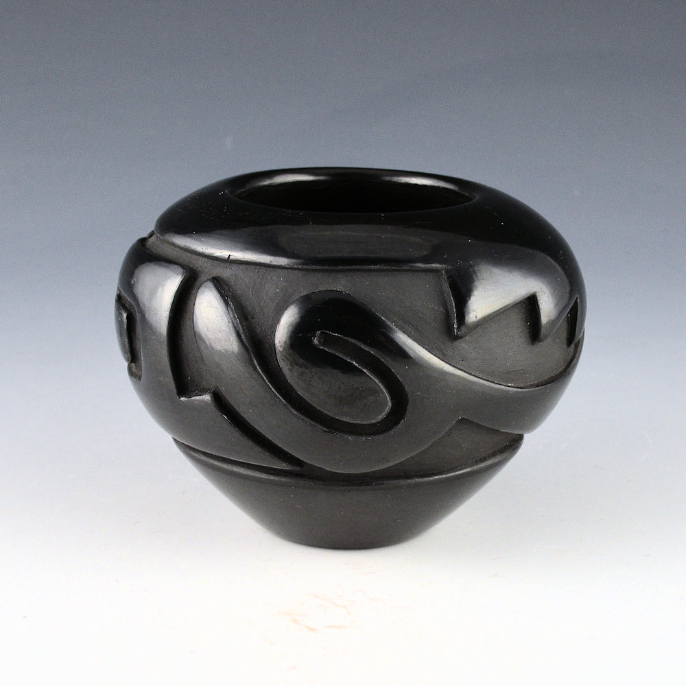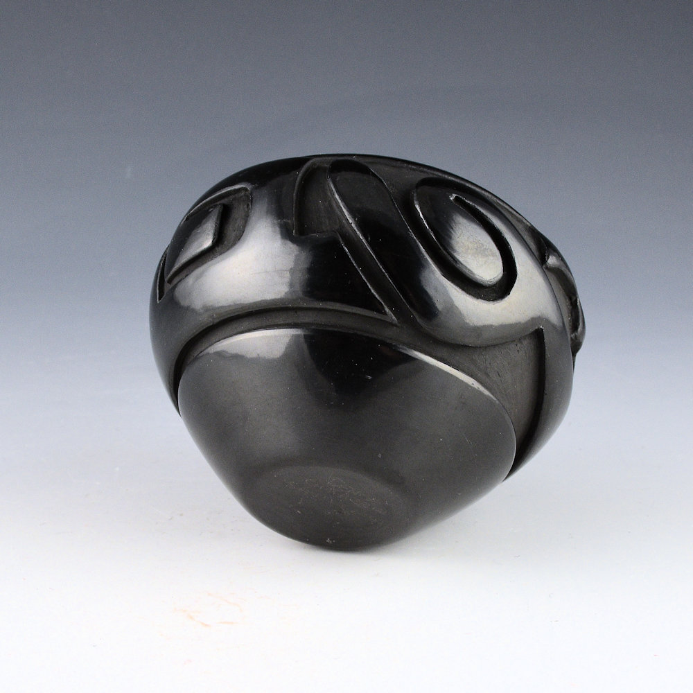 Denise Chavarria (b. 1959) is a daughter of noted potter Stella Chavarria, a granddaughter of Teresita Naranjo, and a great-granddaughter of Christina Naranjo. Each piece is coil built, carved, stone polished, and traditionally fired.