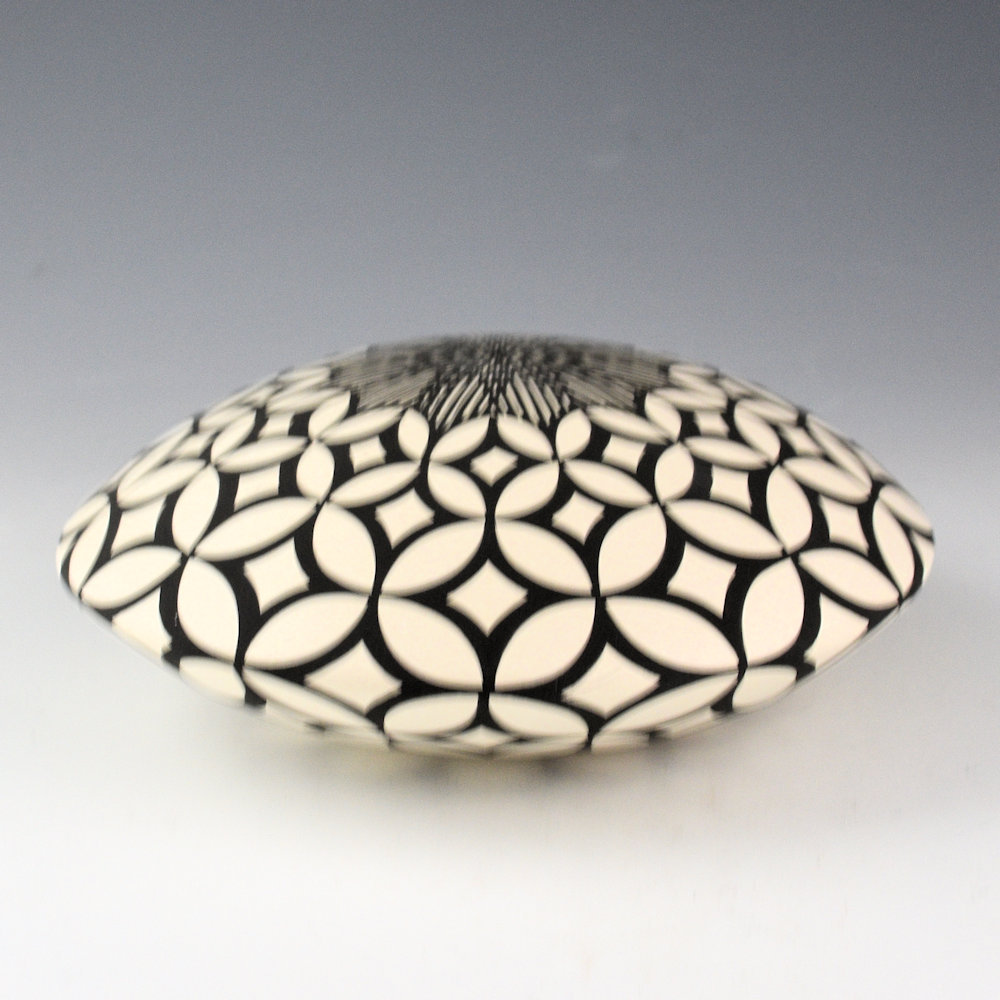 Alicia Kelsey Chino (b. 1979) s a daughter of noted potter Darla Davis and a granddaughter of Rachel JWhite. She learned to make pottery from her mother. She is known for her "op-art" style designs.
