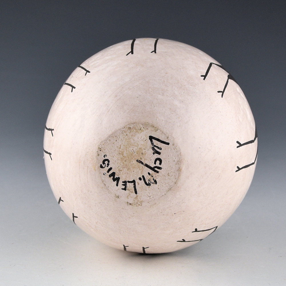 “There was a time a long time ago when Acoma pottery had almost died out. Lucy revived it, she kept it going. We saw photos of the Mimbres pottery for the first time in the late fifties. Lucy had been doing fine-line designs much earlier, from the sherds. She had developed several different ways of doing those lines. Some of her designs were similar to the Mimbres ones, and when she saw those she went on developing more of her own.” Dolores Lewis, Spoken Through Clay