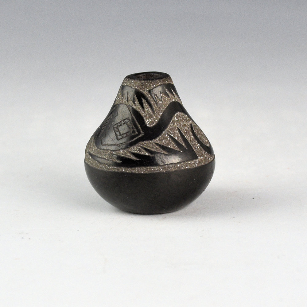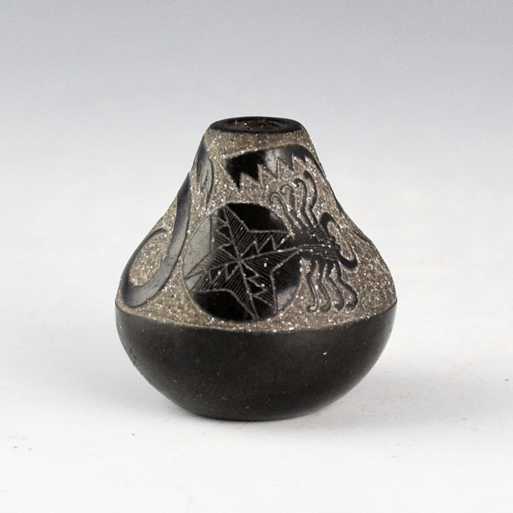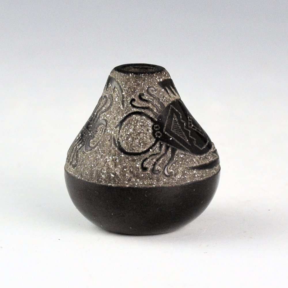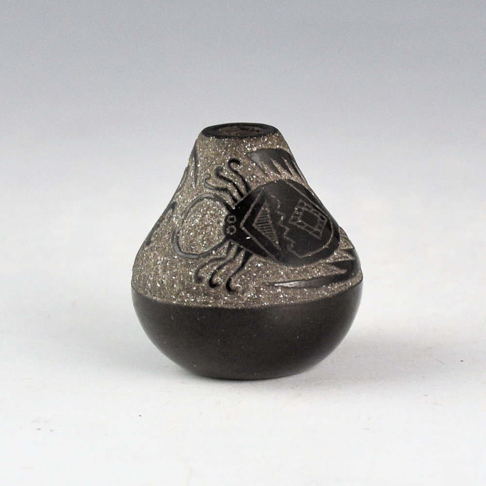 Lonewolf, Joseph – Mini Black Jar with Two Mimbres Insects (1979)
