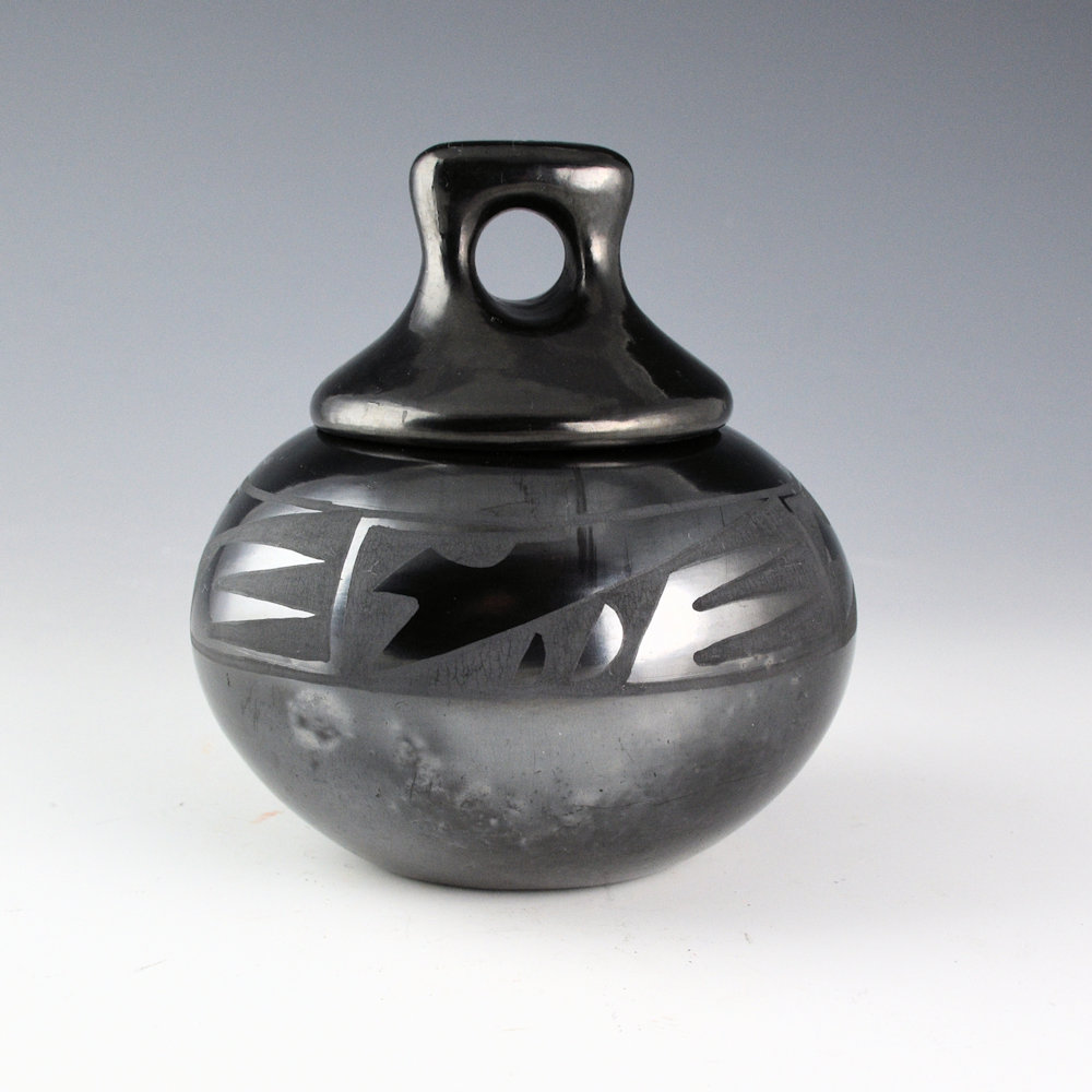 Anita Martinez was a granddaughter of Maria Martinez and a daughter of Santana & Adam Martinez. She was the mother of noted potter Barbara Gonzales. She was known for her plainware and painted pottery and won numerous awards at Santa Fe Indian Market, Gallup Ceremonials and other events.