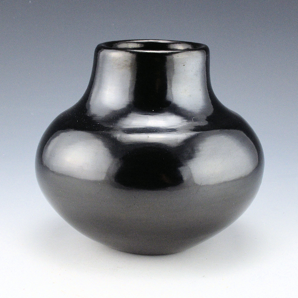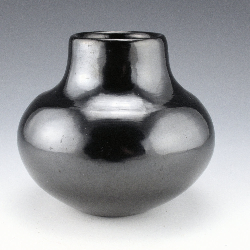 Martinez, Maria – Plainware Gunmetal Sharp Shoulder Jar “Maria Poveka”, 1950s