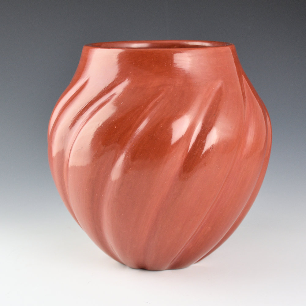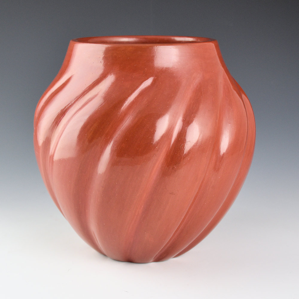 Naranjo, Teresita – Red Swirling 12 Rib Melon Jar (1974)