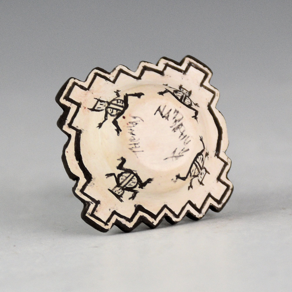 Thomas Natseway is one of the most renowned miniaturists in Pueblo pottery. Rarely does he make a piece that is over 1" tall! Thomas has won numerous awards for his pottery at events such as Santa Fe Indian Market and Gallup Ceremonials.
