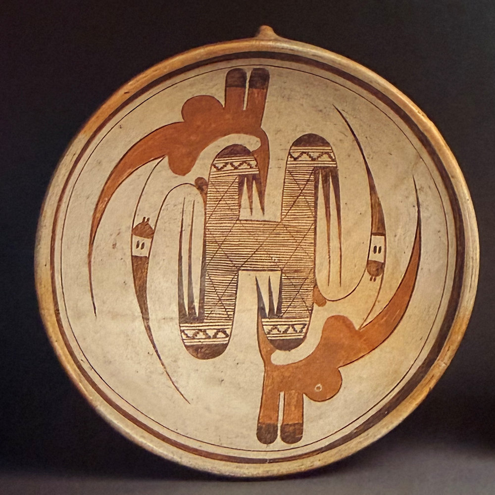 Quotskuyva, Dextra – 8″ Wide Bowl with Double Bird Wing Designs (1980s)