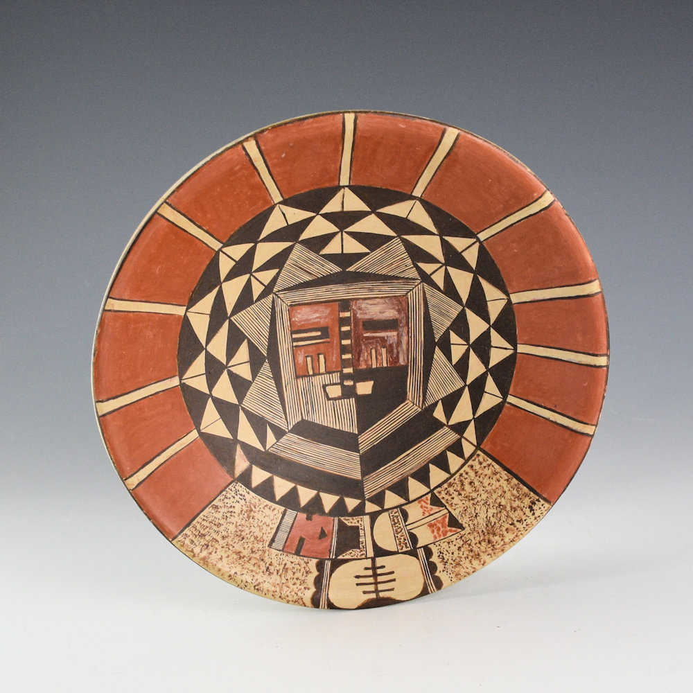 Quotskuyva, Dextra – Plate with Katsina Figures and Carved Back (1981)