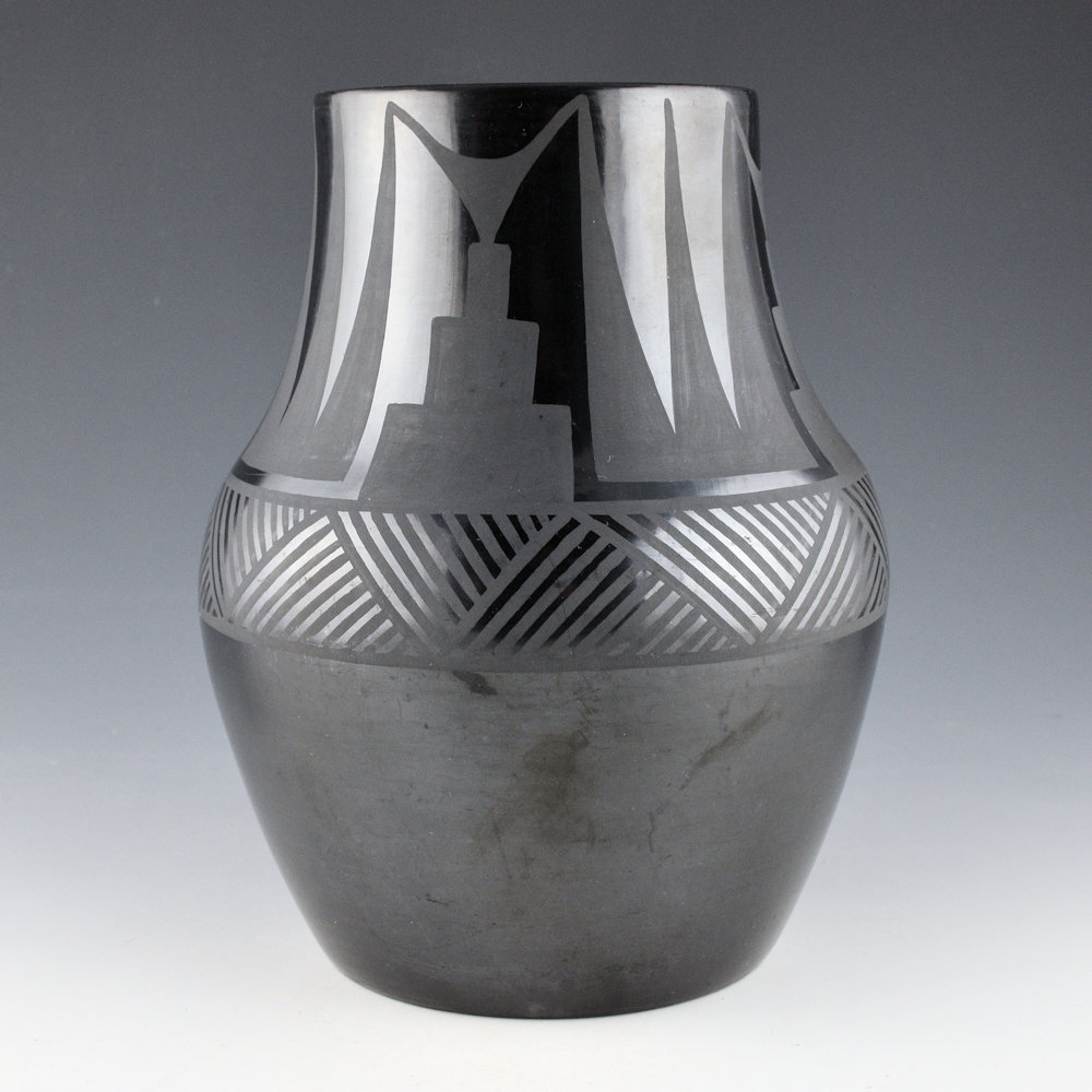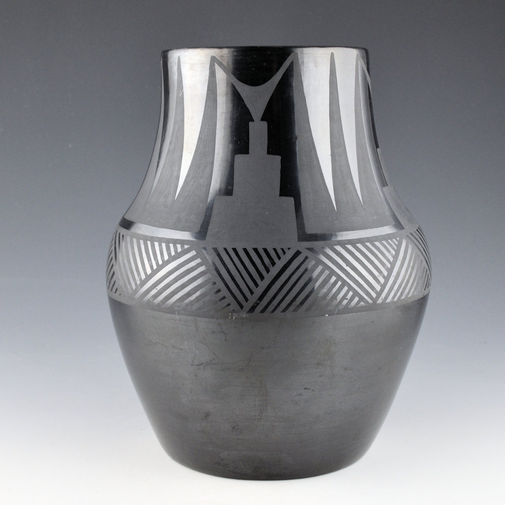 Tafoya, Lee & Betty -11" Tall Storage Jar with Carved Cloud and Rain Designs (1970s)