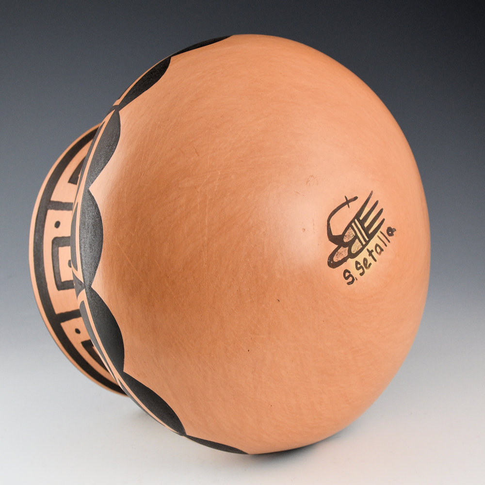 Stetson Setalla is a grandson of Paqua Naha (Frogwoman) and the son of Pauline Setalla. His brother Dee and sisters Gwen Setalla and Agnes Nahsonhoya also make pottery. Stetson began making pottery at the age of 19. Each piece is made from Native clay and is signed with “S. Setalla” and a raincloud.