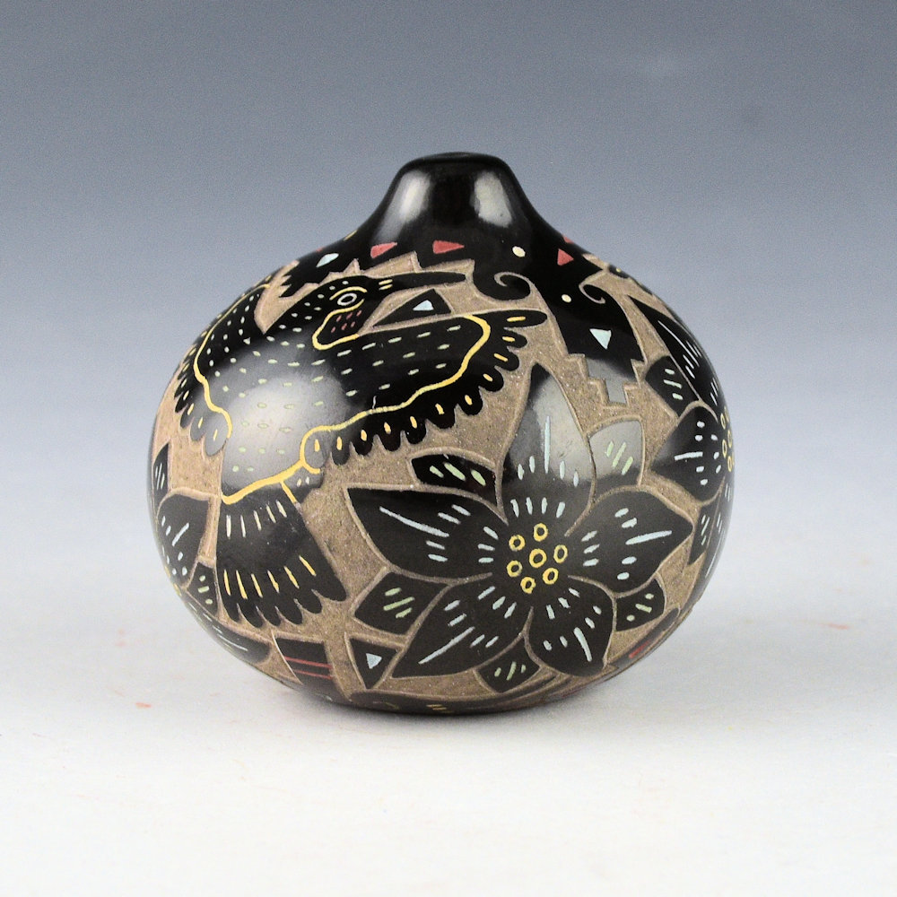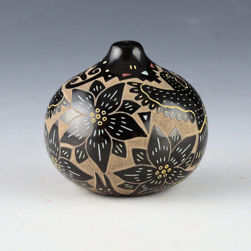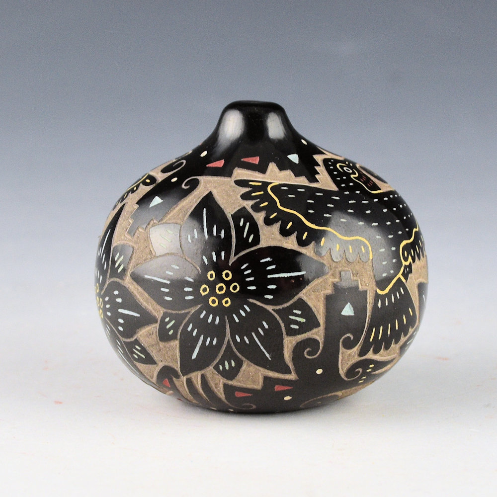 Tafoya, Emily – Black Jar with Hummingbirds and Flowers