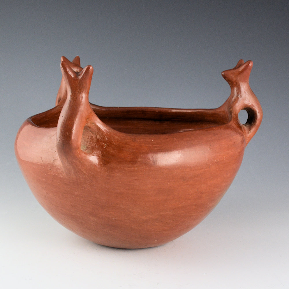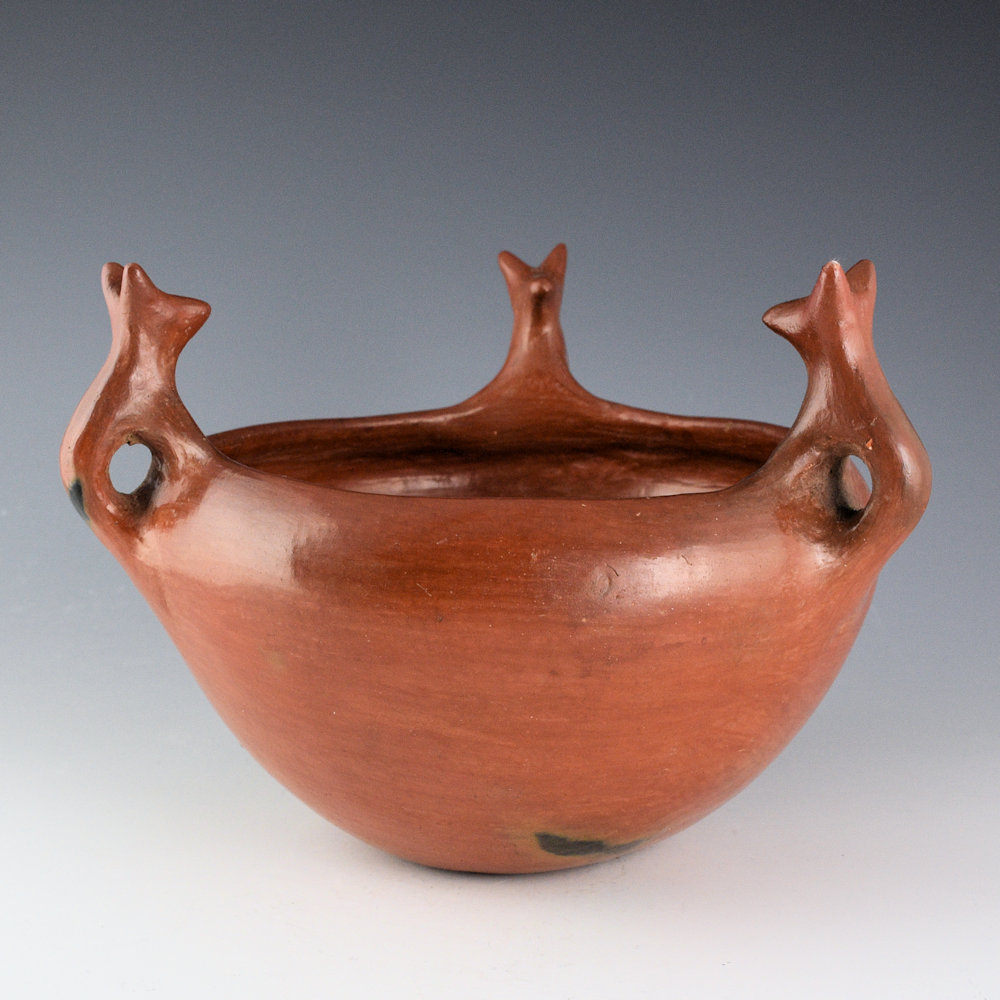 Tafoya, Margaret – Red Three Fox Handles Fully Polished Bowl (1940s)