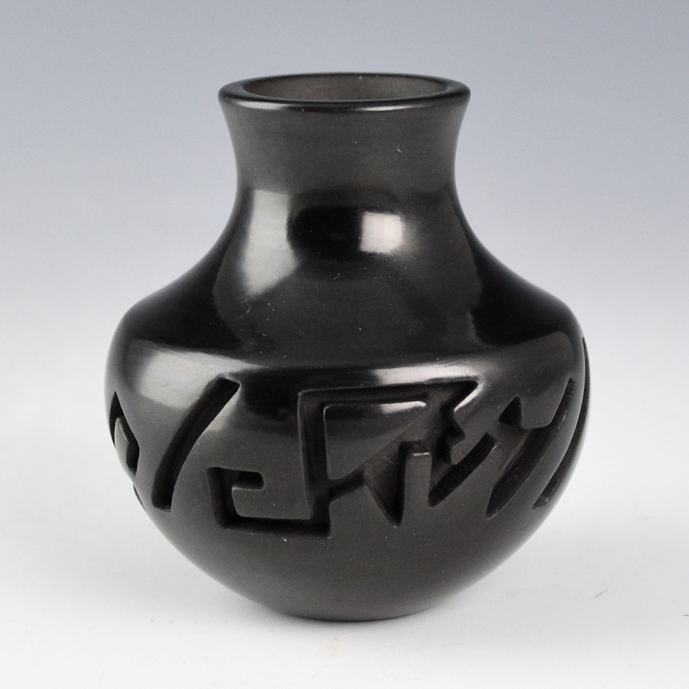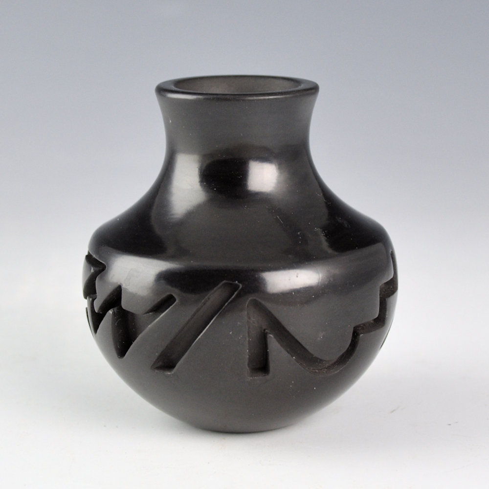 Tafoya, Shirley – Small Carved Water Jar with Lightning and Rain Designs