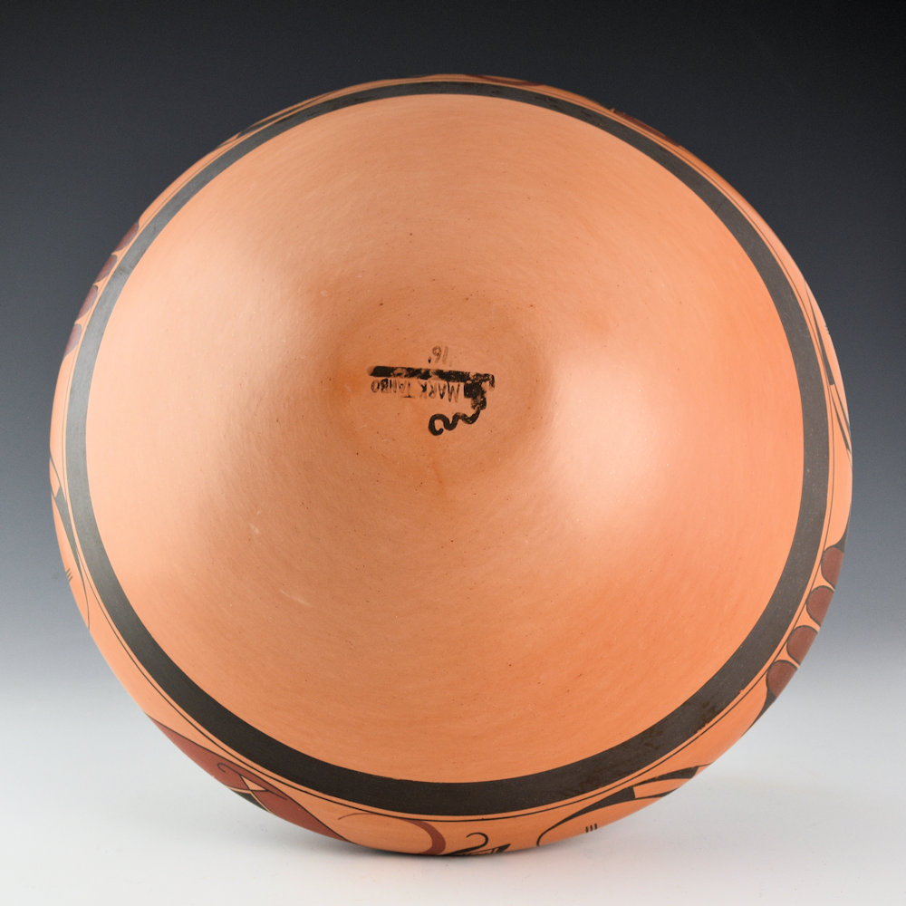 Mark Tahbo was a Hopi-Tewa member of the Tobacco Clan. He had been an active potter since 1978. He learned to make pottery from his great-grandmother, Grace Chapella. His sisters Diana and Pam were also potters. Mark was influential in the early 1990s in recognizing Hopi pottery's traditional firing and keeping it as a practice among Hopi-Tewa.
