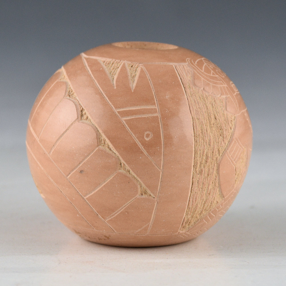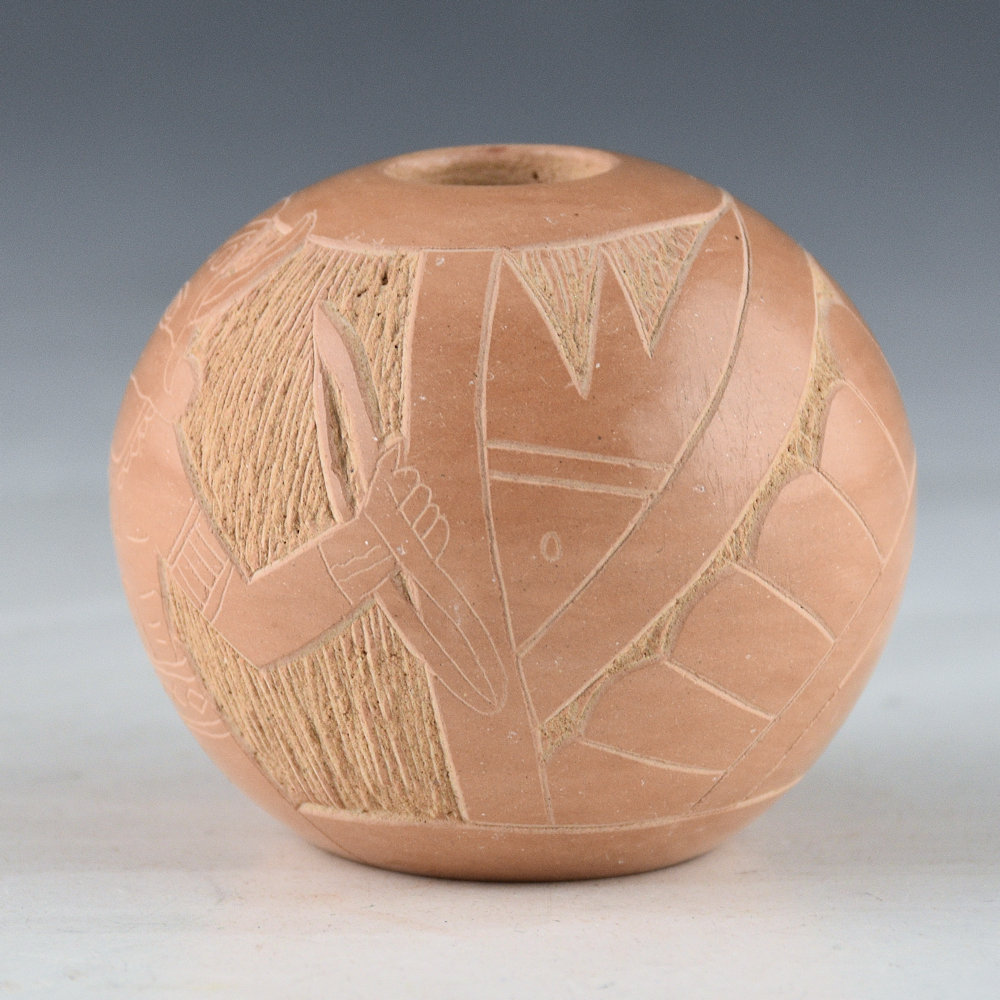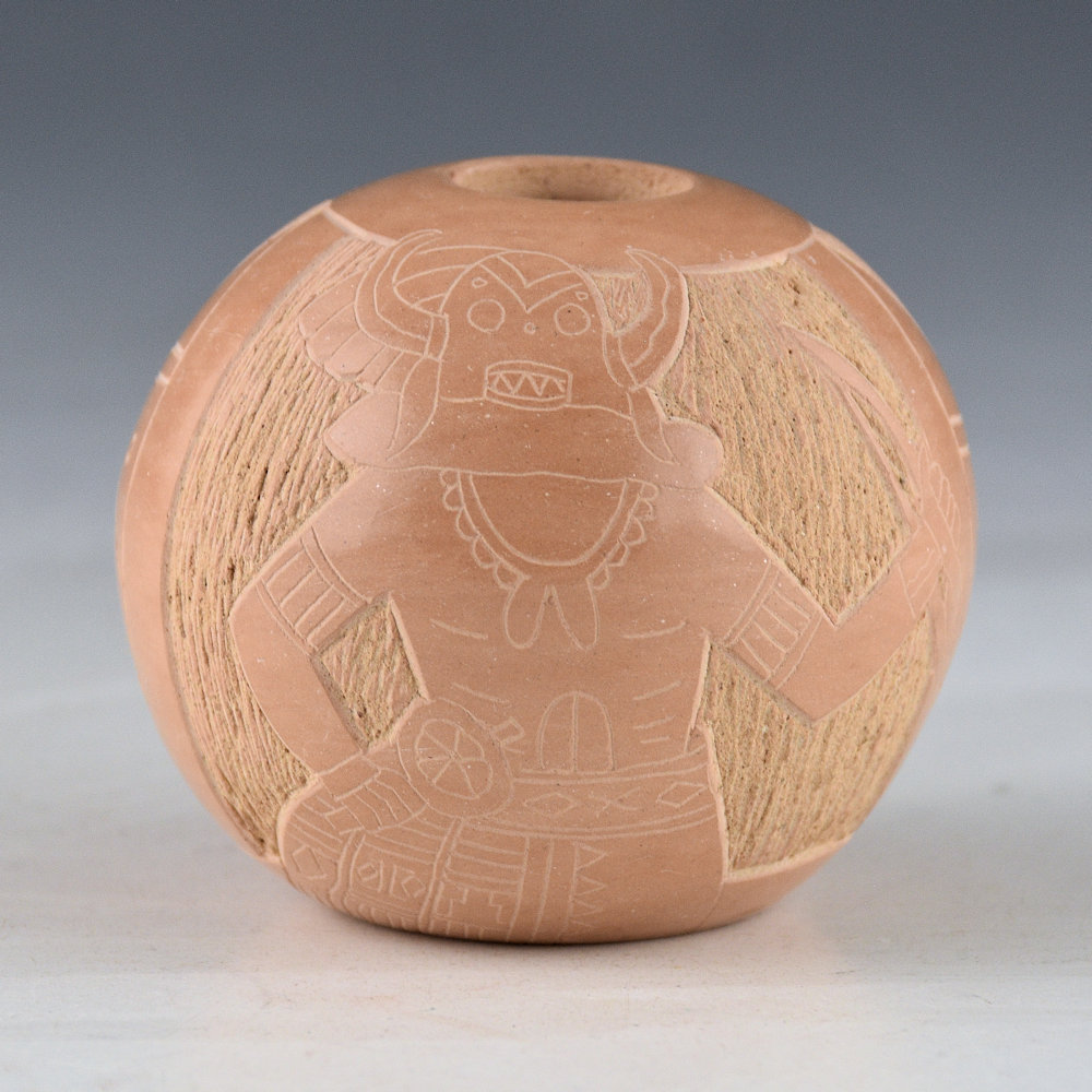 Tapia, Tom – Tan Seedpot with Katsina and Sun Designs (1980s)