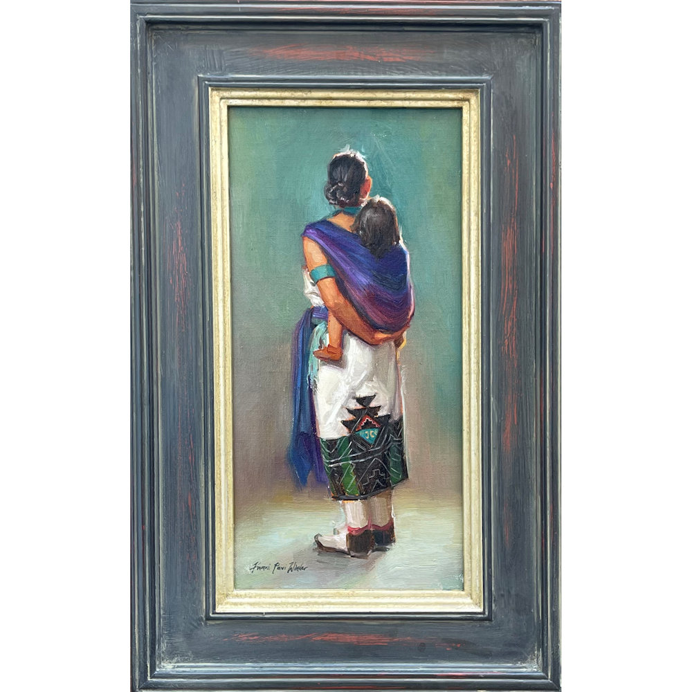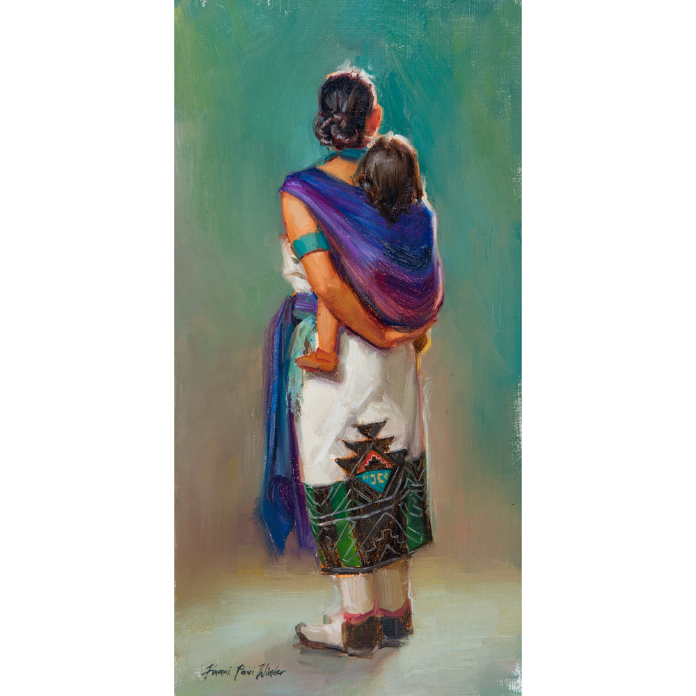 Kwani seeks to explore her Santa Clara Pueblo Tewa heritage through painting and draws on her religious beliefs when developing and painting a native figure. Through her paintings, she seeks to preserve, share, and educate about her unique heritage.