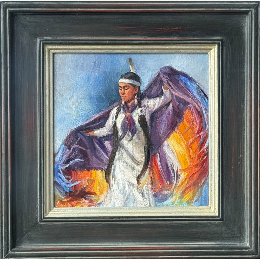 Kwani seeks to explore her Santa Clara Pueblo Tewa heritage through painting and draws on her religious beliefs when developing and painting a native figure. Through her paintings, she seeks to preserve, share, and educate about her unique heritage.