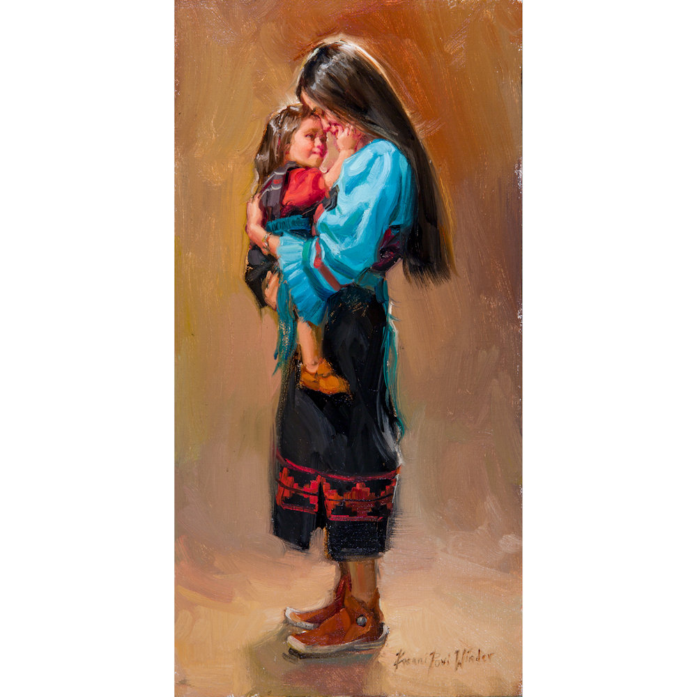 Kwani seeks to explore her Santa Clara Pueblo Tewa heritage through painting and draws on her religious beliefs when developing and painting a native figure. Through her paintings, she seeks to preserve, share, and educate about her unique heritage.